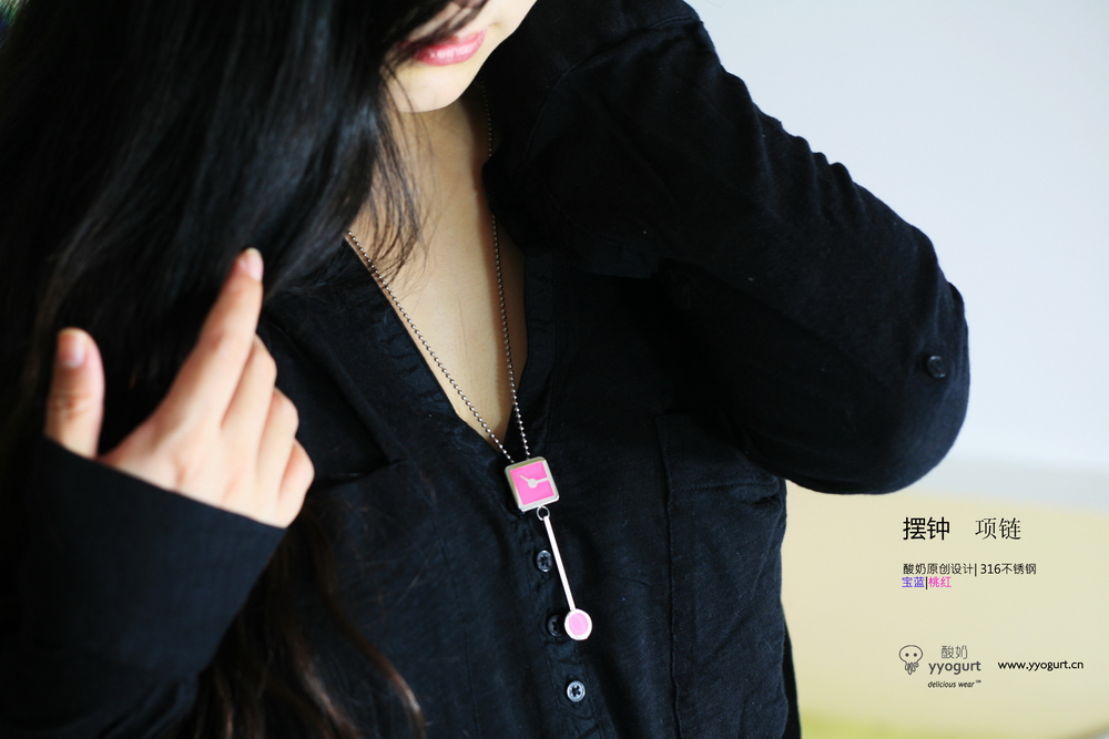 在今天已经少见的摆钟,却是设计师yu yu小时候姥姥家的宝贝。其滴滴答答的声音是等待妈妈和爸爸回家前的期盼,是熟睡前伴着姥姥的轻轻拍打的最美的节奏,童年最美妙的乐曲之一。 极简有趣的设计,青春的桃红和宝石蓝色。采用高级医用不锈钢材质。另有耳环。